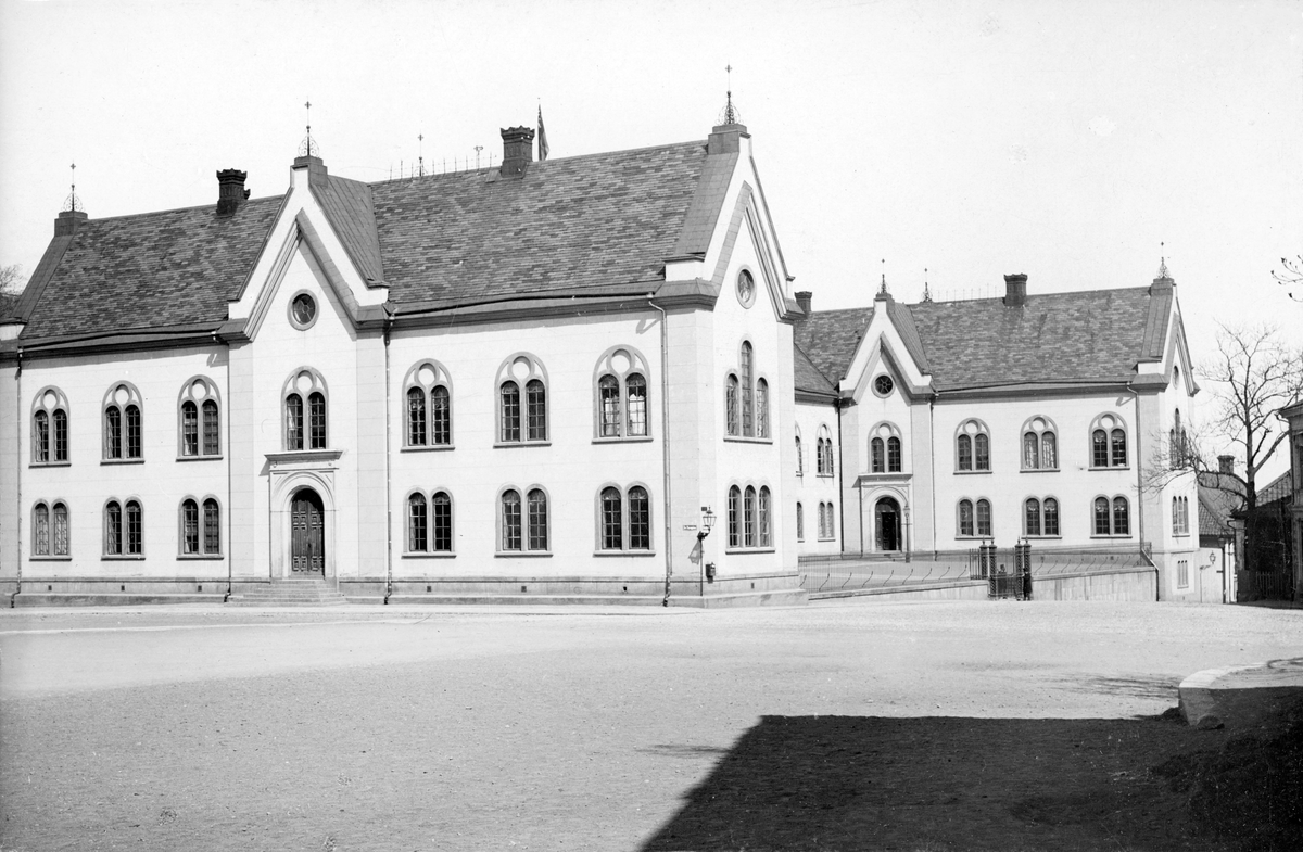 Linköpings stadshus i en tid då byggnaden ännu huserade stadens läroverk. Byggnaden invigdes som lärosäte 1864, avvecklades som sådan 1915 och fungerar sedan 1921 som säte för stadens styrande.
