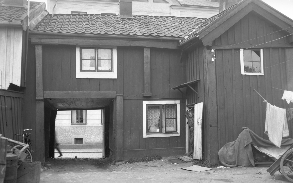 Gårdsinteriör från Hunnebergsgatan 9 i Linköping. Året är 1929. Vy mot söder.