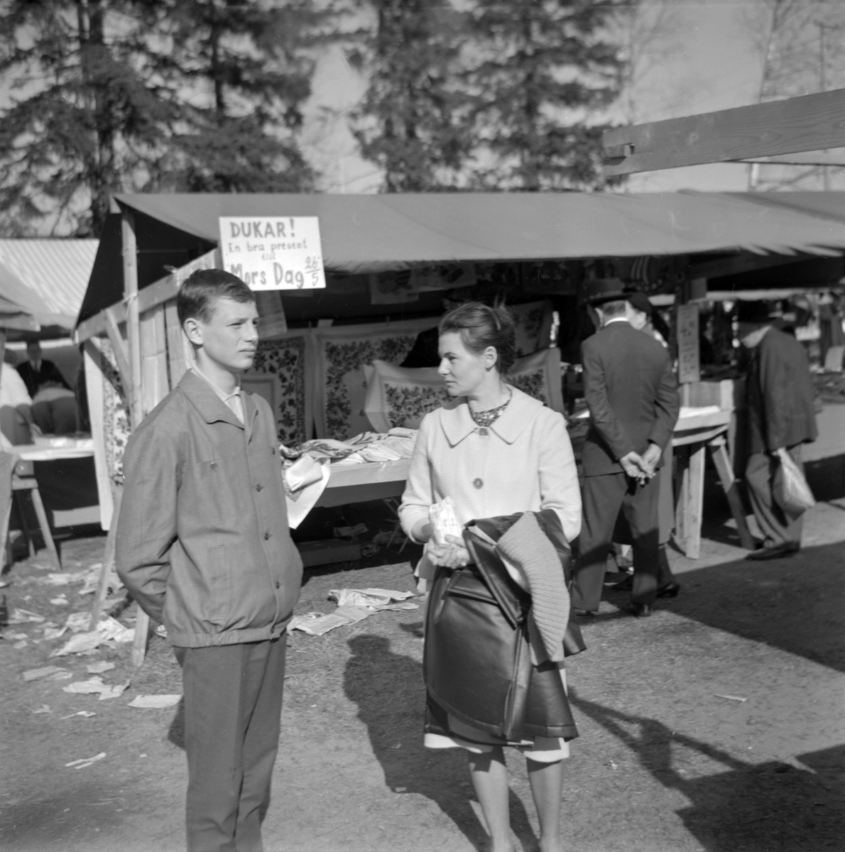 Marknadslivet kostar på. En stunds eftertanke inför eventuell ny runda. Ulrika marknad 1963.