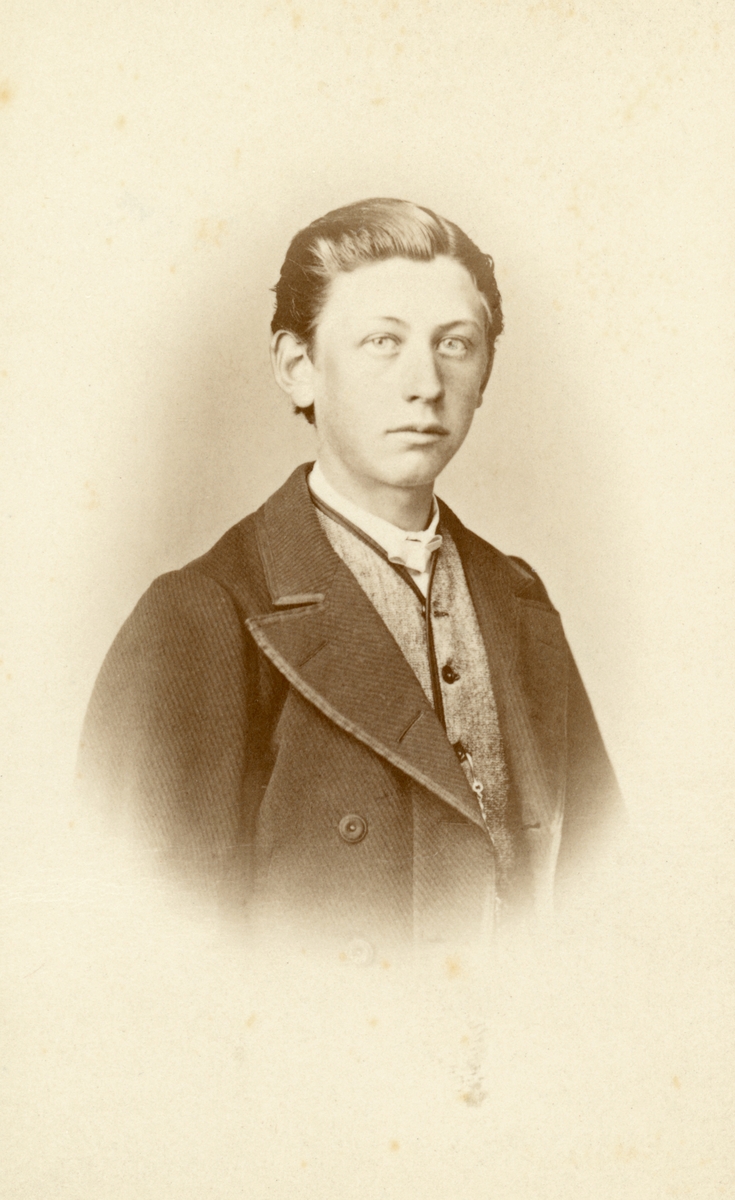 Porträtt av Johan "Janne" Gustaf Bengtsson. Son till kyrkvärden Johan Bengtsson och makan Maria Mathilda Germundsdotter. Familjen var bosatta i gården Byckorp i Ask socken.