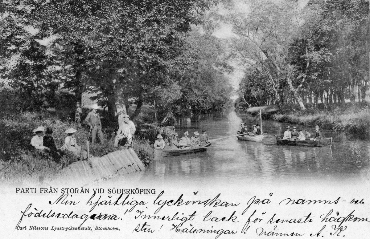 Sommarro på och vid Storån i Söderköping. Brevkort postgånget 1903.