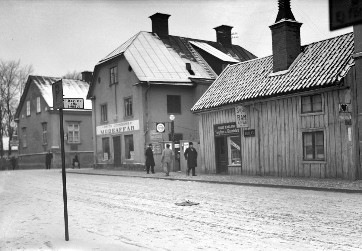 Fotoåret 1934 var bildens Linköpingsmiljö snart borta. Platsen i hörnet av Sankt Larsgatan och Nygatan var bestämd för Åhléns Tempo-varuhus.