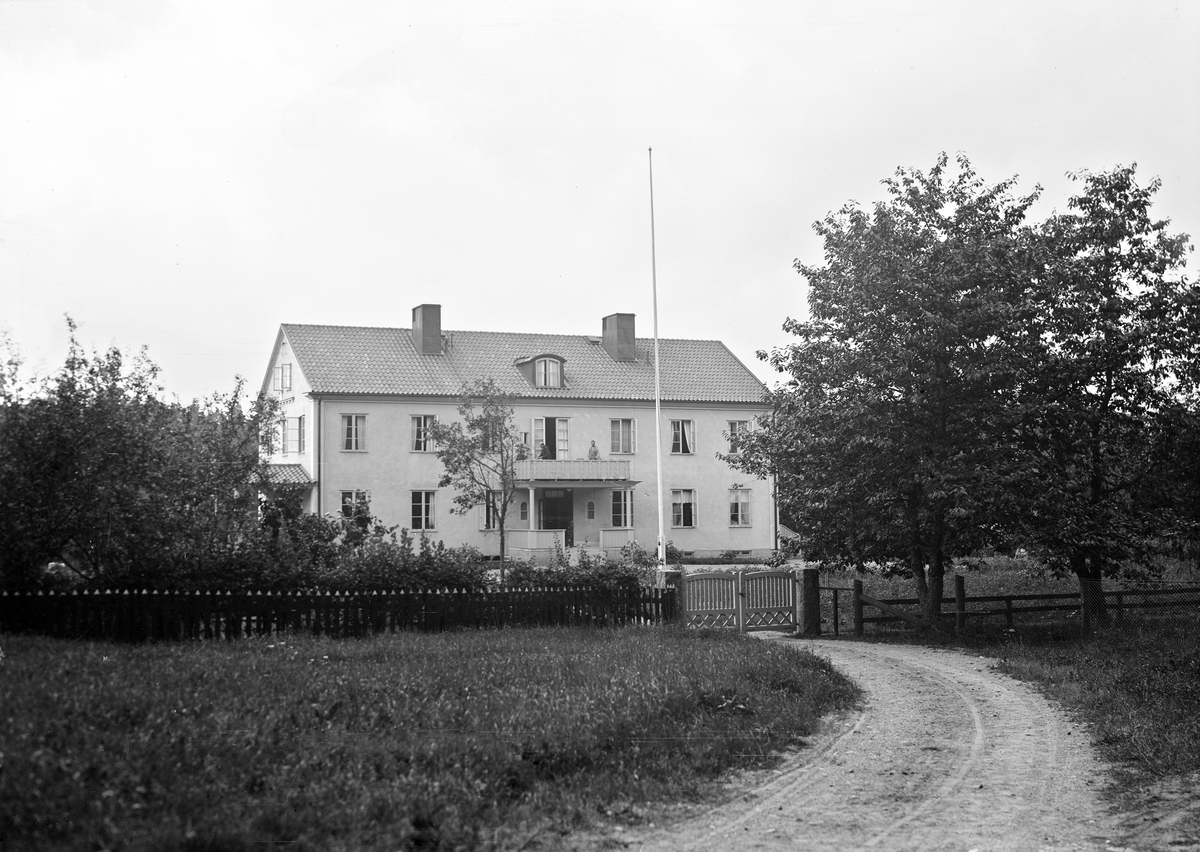 Motiv utan besked ur linköpingsfotografen Didrik von Essens samling. Byggnaden igenkänns som Svintuna, Kolmårdens ålderdomshem. Hemmet uppfördes 1929, således efter den tillskrivna fotografens död 1922. Vi har att förbise detta faktum och trots oklarheten finna glädje i den förträffliga dokumentationen av byggnaden från tiden då den var relativt ny.