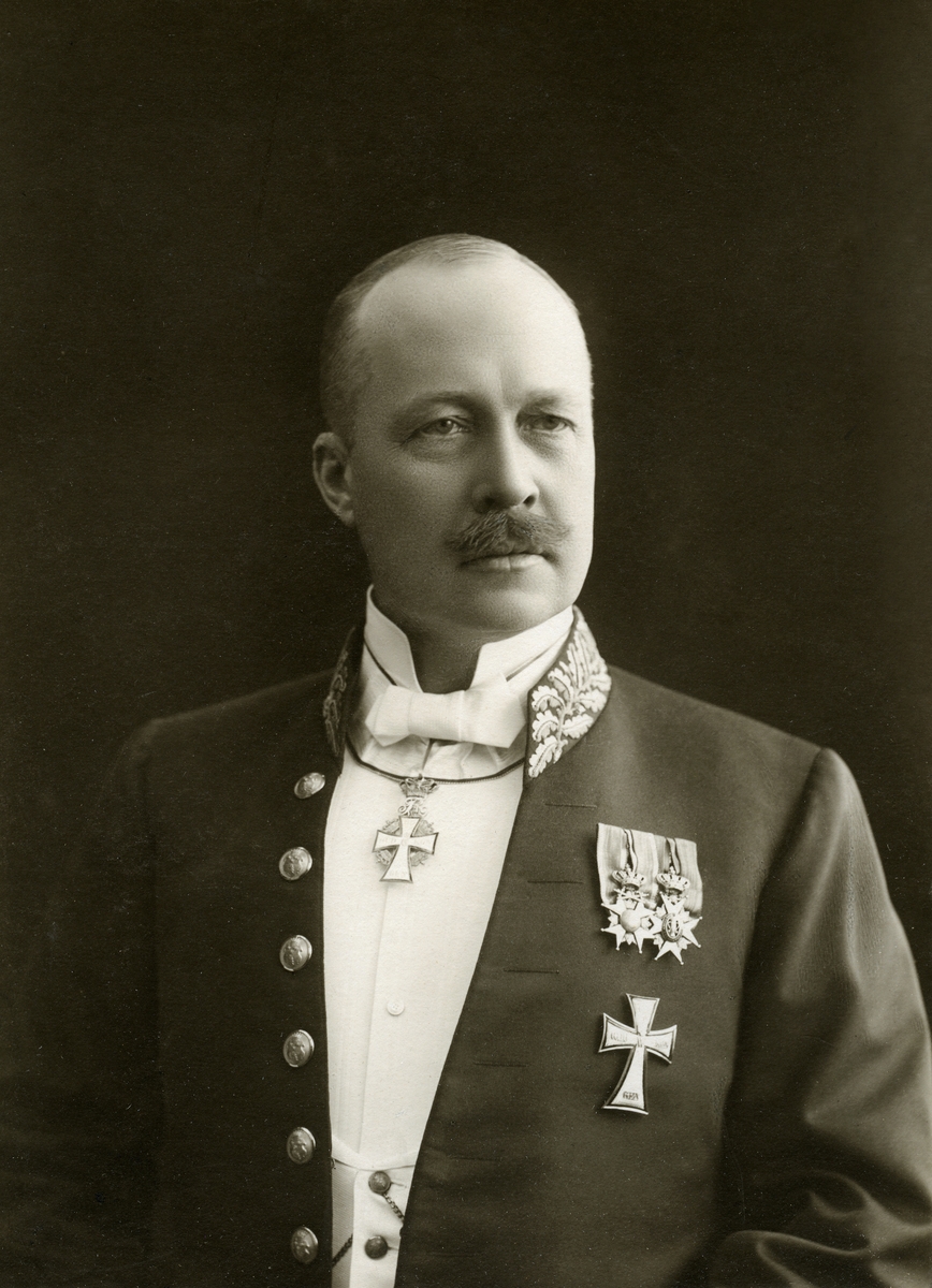 Porträtt av Robert De la Gardie. Född i skånska Silvåkra men uppvuxen i Linköping under faderns period som landhövding över Östergötlands län. Likt denne kom även Robert d. y. att utnämnas till styresman över eget län, för hans del Malmöhus. Från 1898 gift med Elvira Smith.