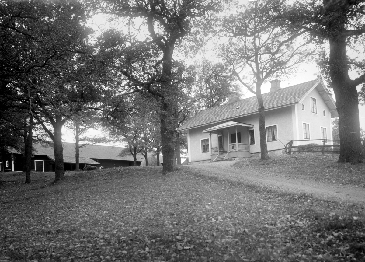 När laga skifte förättades i byn Skog 1869 belades Norrgården med så kallad utflyttningsskyldighet. Gårdens nya läge koncenterades till marken mot Stångån och på höjden öster om landsvägen uppfördes den nya mangården och erforderliga ekonomibyggnader. Hösten 1921 dokumenterades gården genom detta fotografi beställt av ägaren Oscar Ekman till Bjärka Säby.