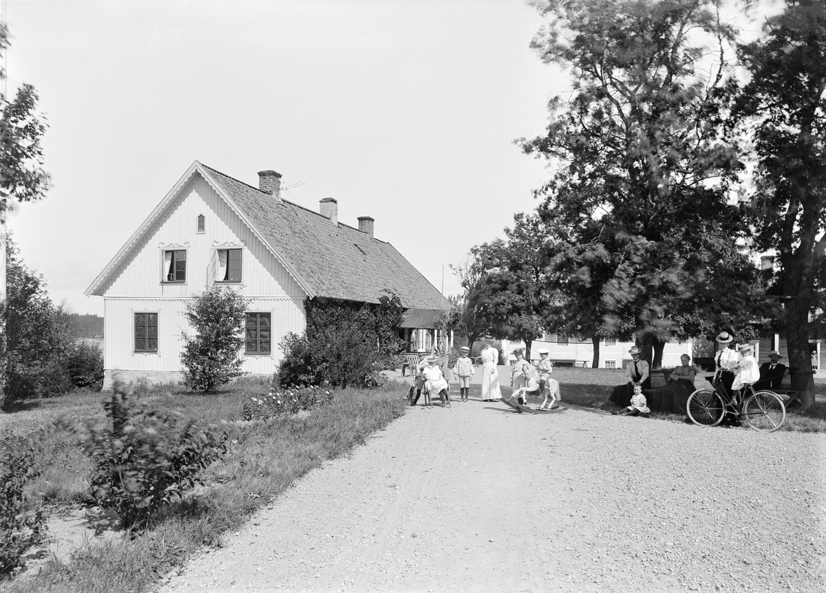 Man hade det till synes idylliskt i Sjöbacka den här dagen då fotograf Didrik von Essen kom på besök. Sannolikt var han väntad, möjligtvis beställd och med ett hastigt arrangemang skapades ett harmoniska ögonblick. Vi har inga besked om personerna på bilden men under perioden 1889 till 1903 arrenderades gården av familjen Tydén, varför dessa kan vara möjliga. Reservation dock för husfadern Christian August Tydén som gick bort 1897.