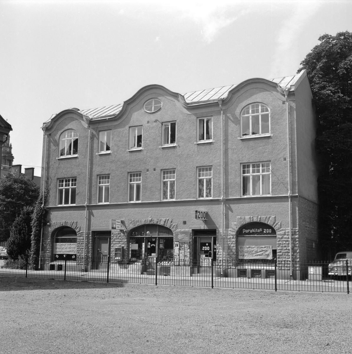 Utmed Repslagaregatan i Linköping låg tills det revs denna rejäla fastighet. Det jugend-inspirerade huset uppfördes av byggmästare Oscar Nylander i början av 1900-talet och kom att bestå i omkring 75 år. Vid tiden för bilden, 1978, förberedda Parakitas Zoo och husets tobaksaffär för flytt till mer bestående affärslägen.