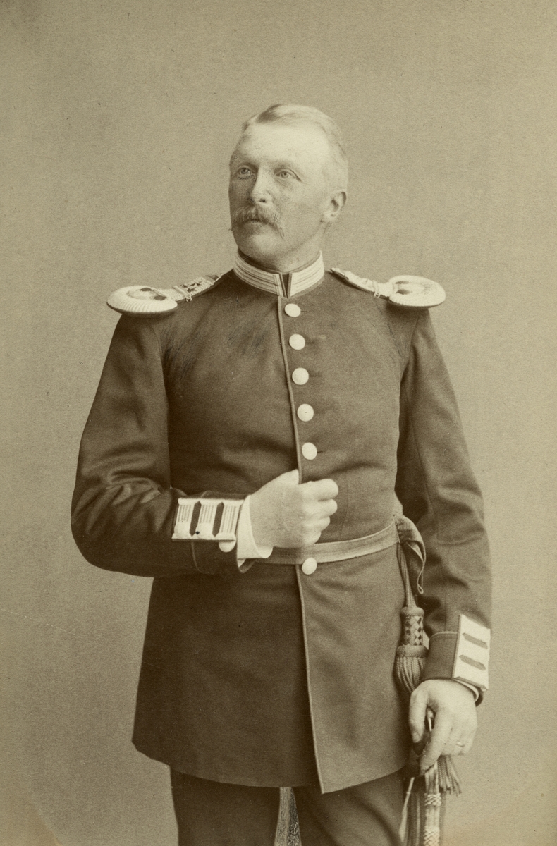 Henrik August Thollander vid höjden av sin militära karriär vid Andra livgrenadjärregementet i Linköping. Hans befordringsväg nådde kaptens grad trots följande givna omdöme: En godhjärtad hedersman; föga ägnad för officerens yrke. Ägare av Brabergs gård i Skönberga. Från år 1880 gift med Anna Pereswetoff-Morath.