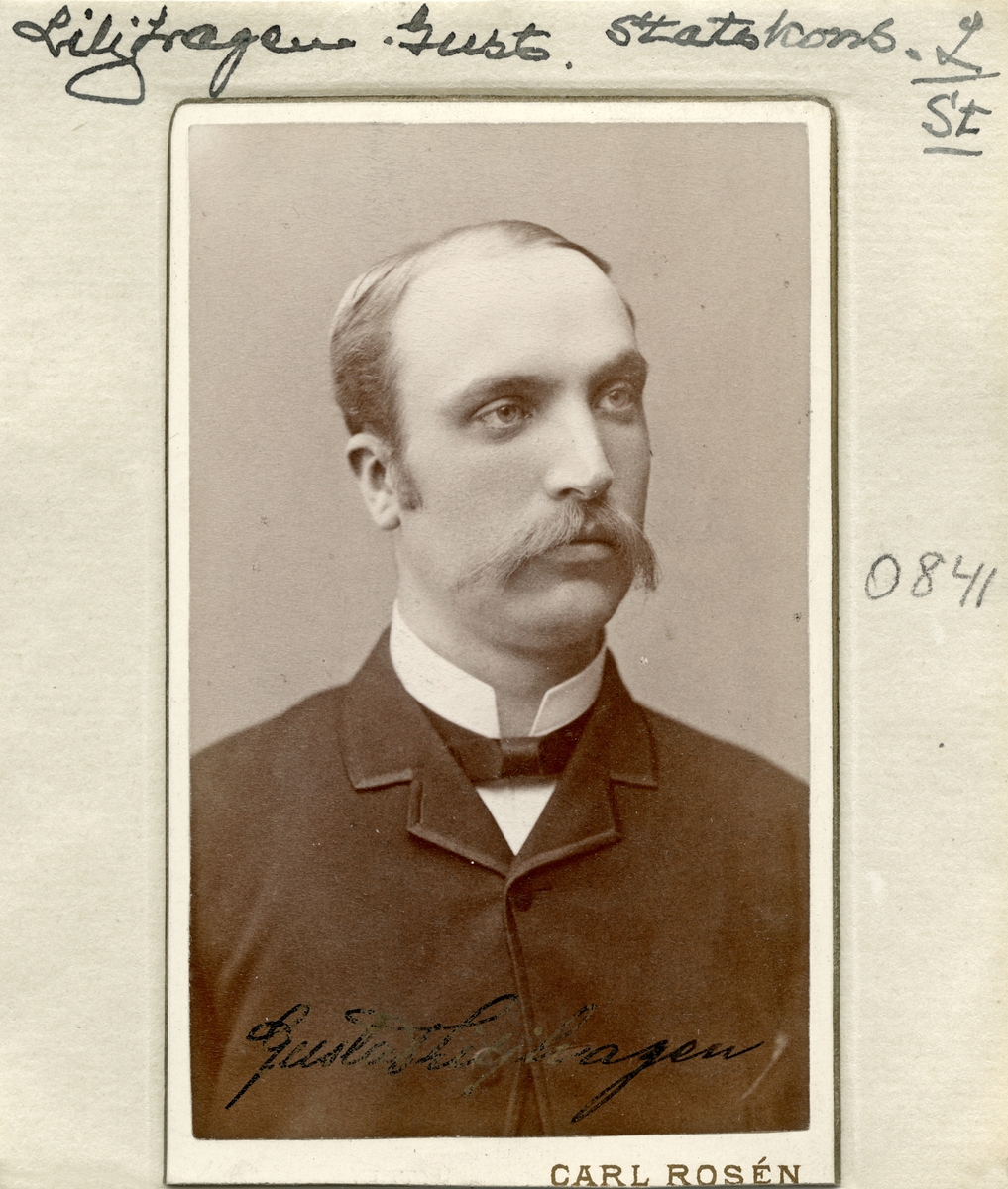 Porträtt av stadsagronom Gustaf Liljhagen. Inflyttad från födelseorten Voxtorp till Linköping 1884. Efter en tid i Stockholm flyttade han åter till Linköping 1891 och nu gift med Göta Matilda Thundahl. Makarna bosatte sig på adress Kungsgatan 21. I september månad 1894 flyttar familjen slutligen från Linköping för ny bosättning på Östermalm i Stockholm.
