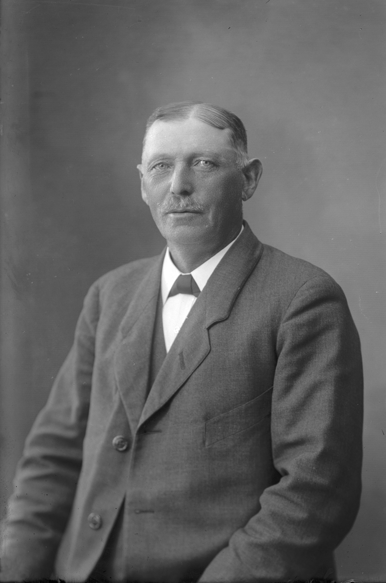 Hemmansägare Adolf Andersson poträtterad i fotografen Maria Teschs ateljé i Linköping. Året är omkring 1915. Vid tiden för bilden var Adolf hemmahörande i Rappestad där han tillsammans med sin hustru Maria Charlotta Niklasdotter ägde gården Slycke Trädgård.