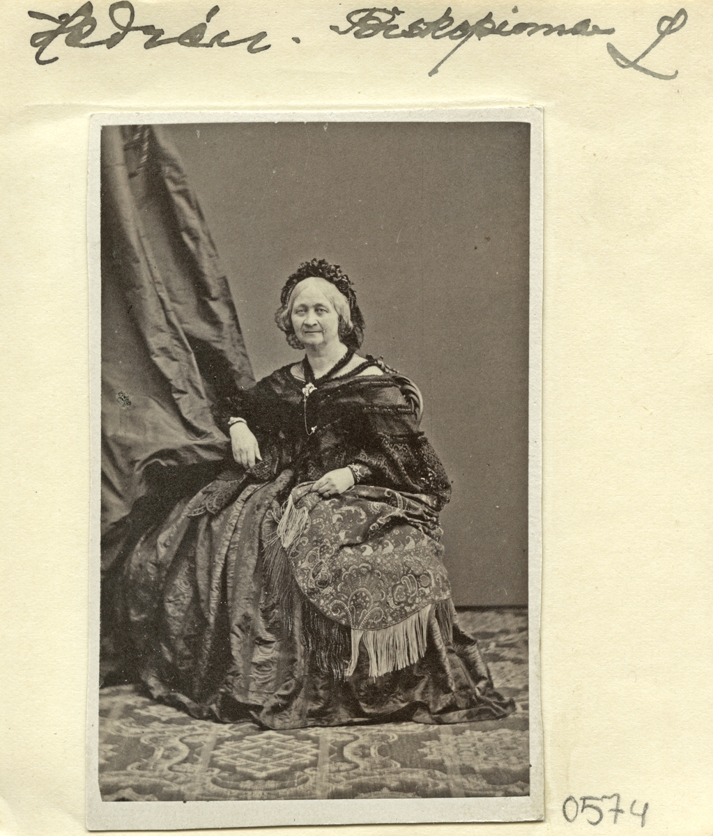 Porträtt av Emma Charlotta Helling. Gift första gången med Eric Gadelius (1787-1827), en andra gång med Per Nils Poignant (1778-1839) och från 1840 med Johan Jacob Hedrén (1775-1861, biskop i Linköpings stift från 1833.
