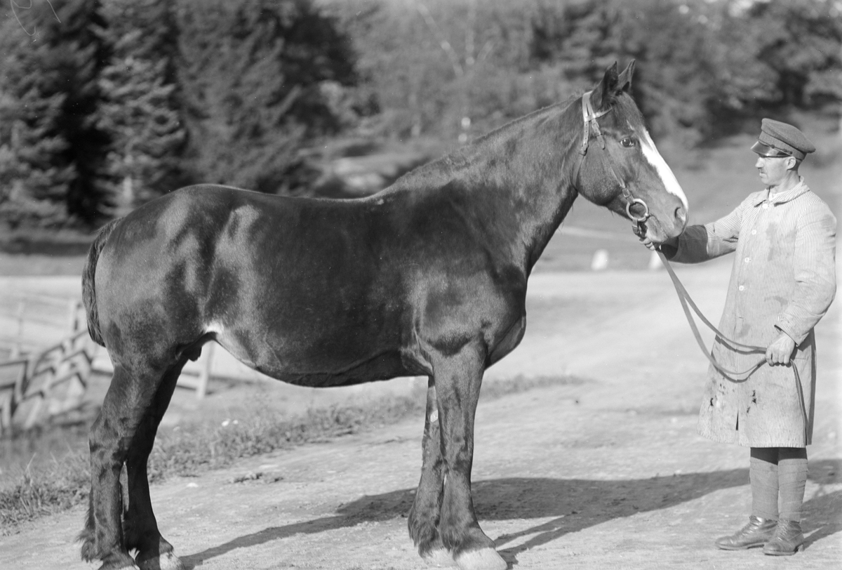 Vagnshästen Borni A på Bjärka Säby. Fotograferad i oktober 1926.