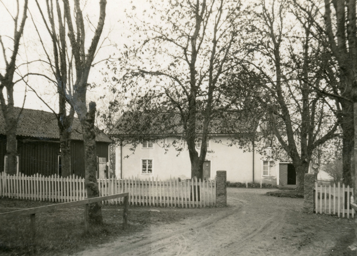 Länge drev driftiga handlare handelsbod i anslutning till Tjugby mellangård i Heda. Den något oskarpa bilden visar hur miljön tog sig ut omkring 1925.