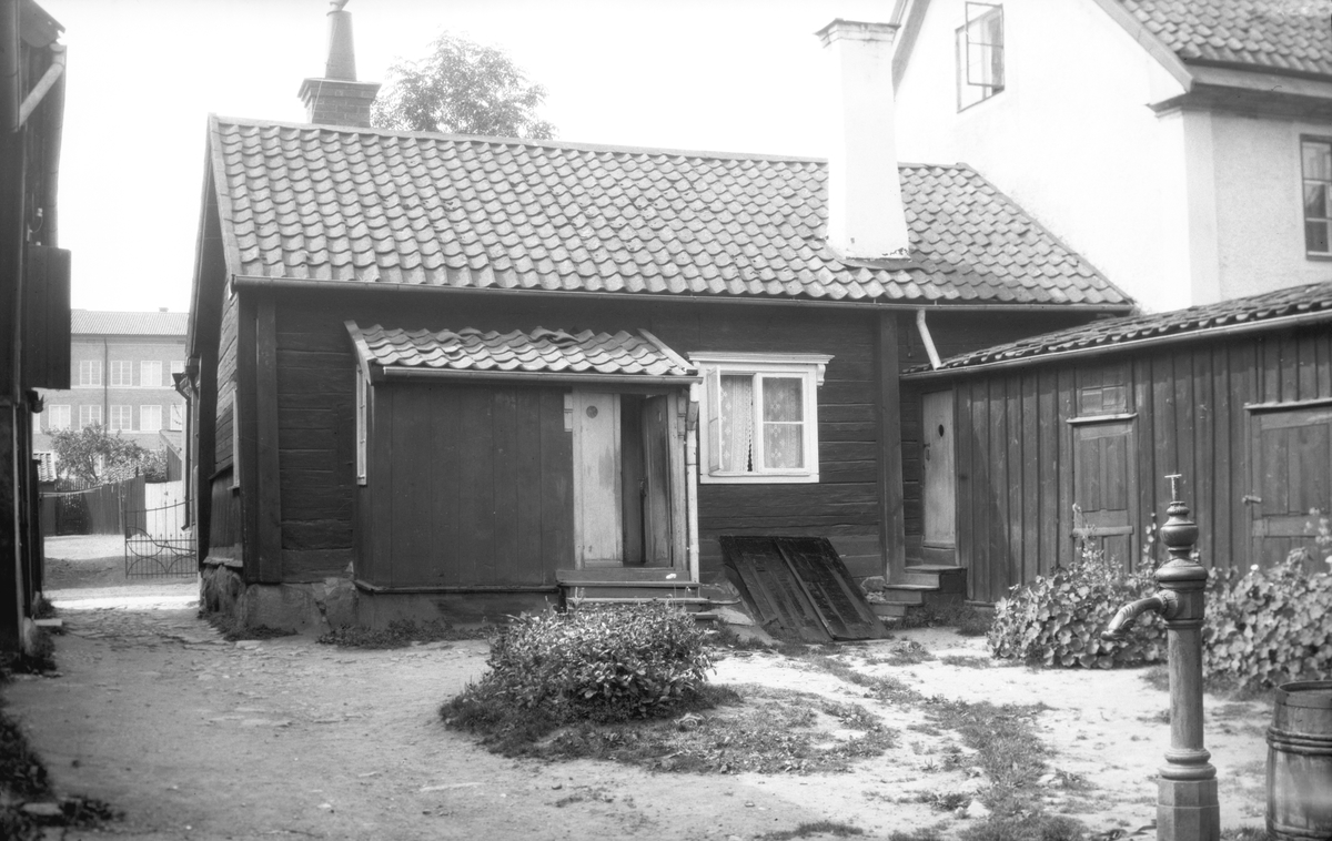 Dokumentation av Hunnebergsgatan 25 i Linköping 1929. Bilden visar ett av gårdshusen. Vy från norr.