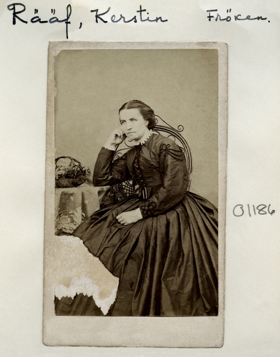 Delvis medfaret porträtt av fröken Kerstin Rääf. Född 1843 i Sunds socken som dotter till kammarjunkare Leonard Fredrik Rääf och Christina Jacobina (Jacquette) von Heijne. Gift 1874 med Fredrik Adolf Ahlbrandt.