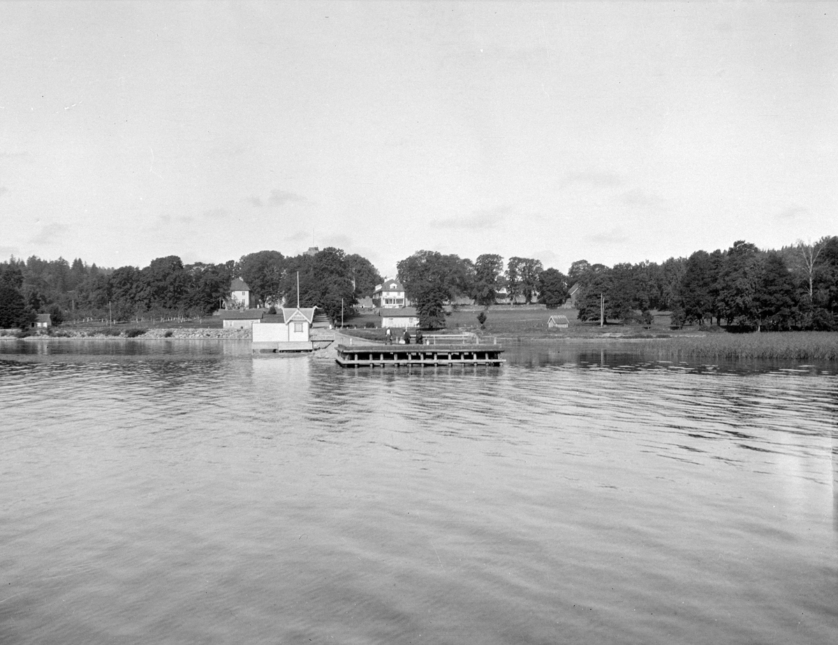 Stjärnorp från sjön i en tid då fartygstrafiken ännu var påtaglig och krävde en rejäl brygganläggning på platsen. Bilden ingår i en serie bilder fotografen daterat åren 1906-08.