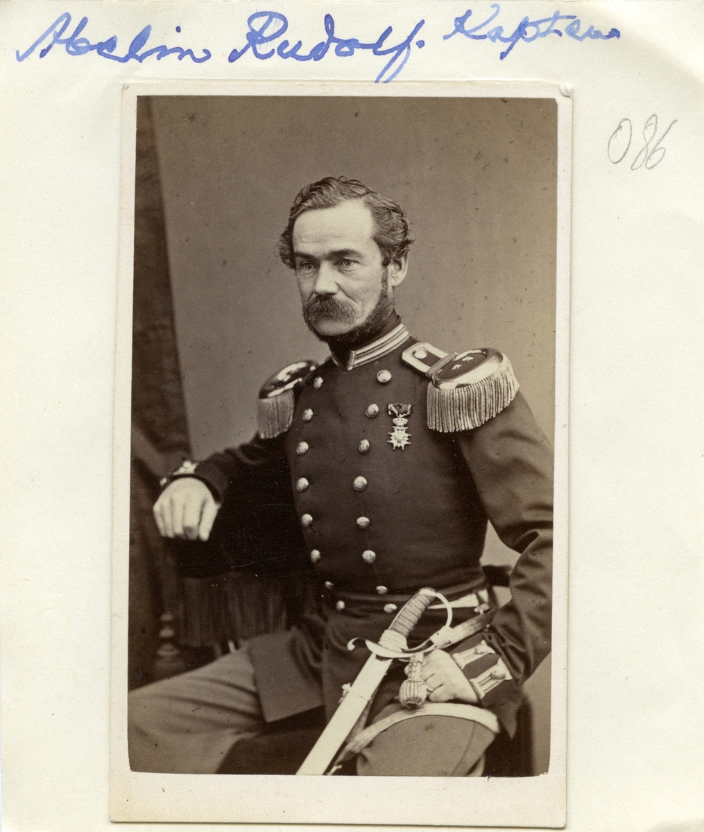 Porträtt av Rudolf Abelin. Född i Linköping 1819 som son till auditören vid Kungliga livgrenadjärregementet och sedermera stadens borgmästare, Zacharias Abelin och makan Henrika Carolina Lodin. I vuxen ålder inledde Rudolf Abelin en militära karriär som volontär vid Första livgrenadjärregemetet i Linköping. Efter befordran vid Nerikes regemente kom han att verka vid de bägga skånska infanteriregementena. Under åren 1867-1871 var han Sveriges krigsminister.