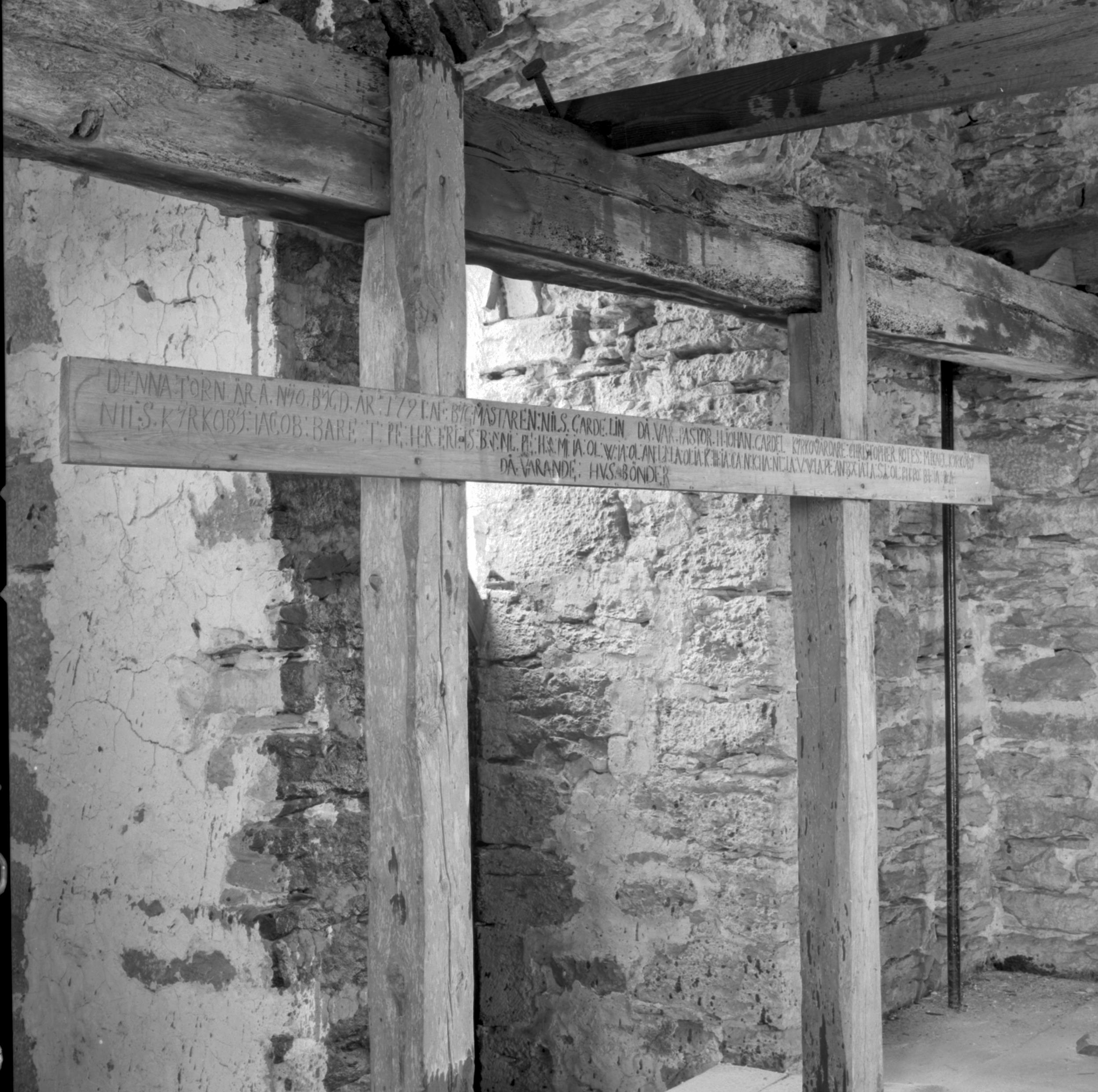 Inskritption till tornets byggande, år 1791.