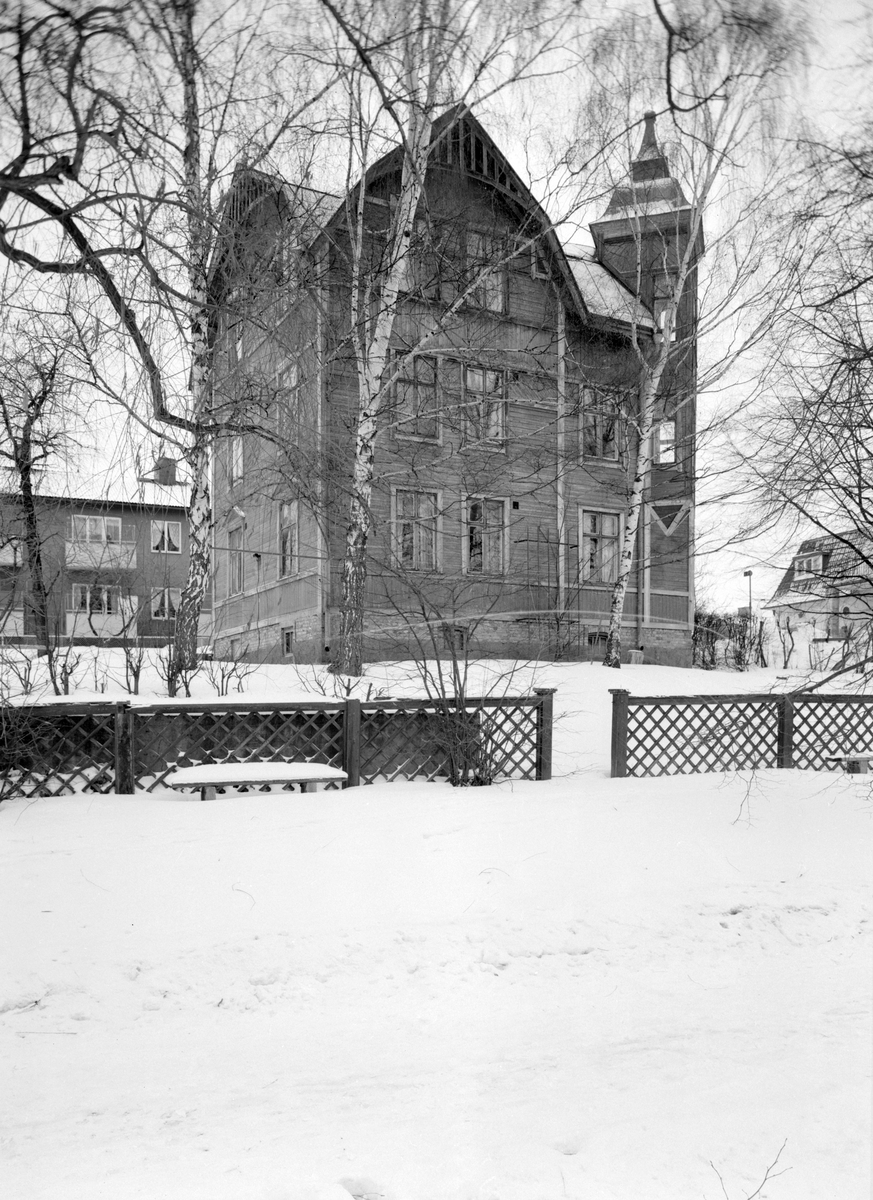 Längts ned utefter Åkersbergsgatan låg detta träslott. Dessvärre rivet kort efter fototillfället 1967. Vy från söder.