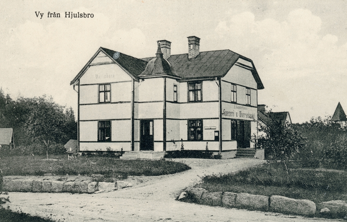 Affärs- och bostadsfastigheten Marieborg i Hjulsbro uppfördes 1910 av byggmästare Ernst Fritiof Engström. Butiksdelen hyrdes ut och från 1920 innehade Edvard Gustafsson arrendet.