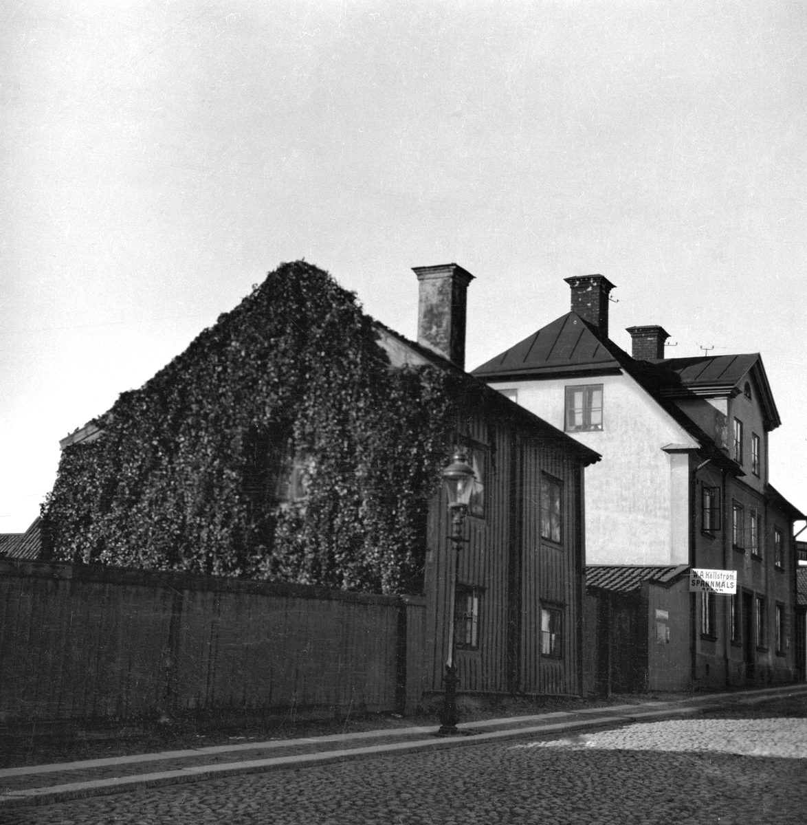 Dåvarande Nygatan 28 i Linköping. Stadsgårdens huvudbyggnad hade sin gavelfasad mot Sankt Larsgatan och det var således den som mötte de som gjorde sig ärende till Trädgårdstorget. Fasaden annonserade "Brita Johnsons Modeaffär". Hon hade flyttat till Linköping från Jönköping 1905 och efter en tid öppnat butik i fastigheten. Hennes främsta artiklar var damhattar. En annan affärsidkare i gården var Werner August Källström. Skylten vid hans ingång visar vägen till hans spannmålsaffär. Bilden är odaterad men uppskattas till tiden omkring 1915. Ungefär 20 år därefter skulle här resas Åhléns Tempo-varuhus, sedermera och för yngre Linköpingsbor mer känt som platsen för Hennes & Mauritz.