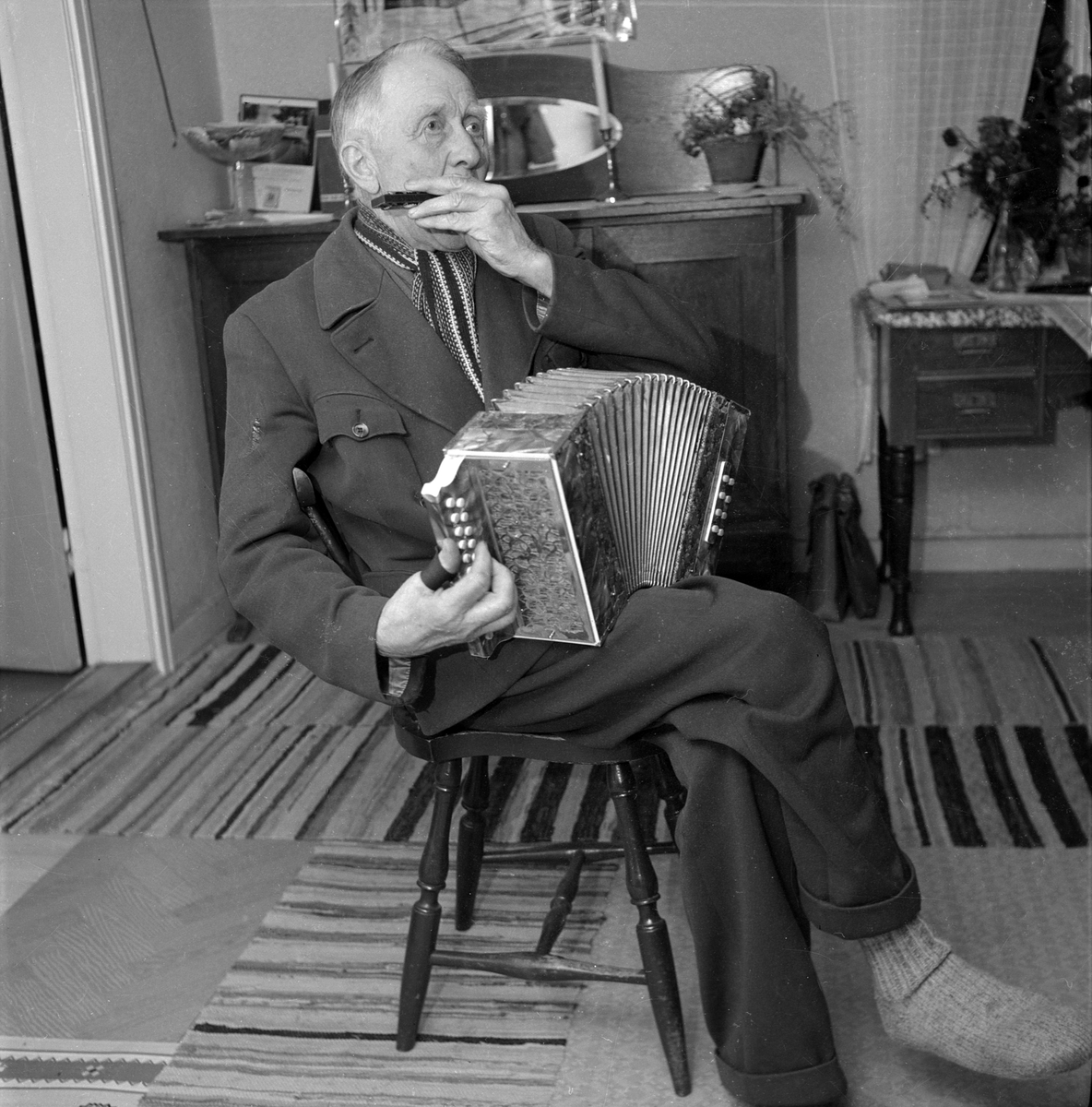 Martin Larsson i Nydal trakterar klaver och munspel.