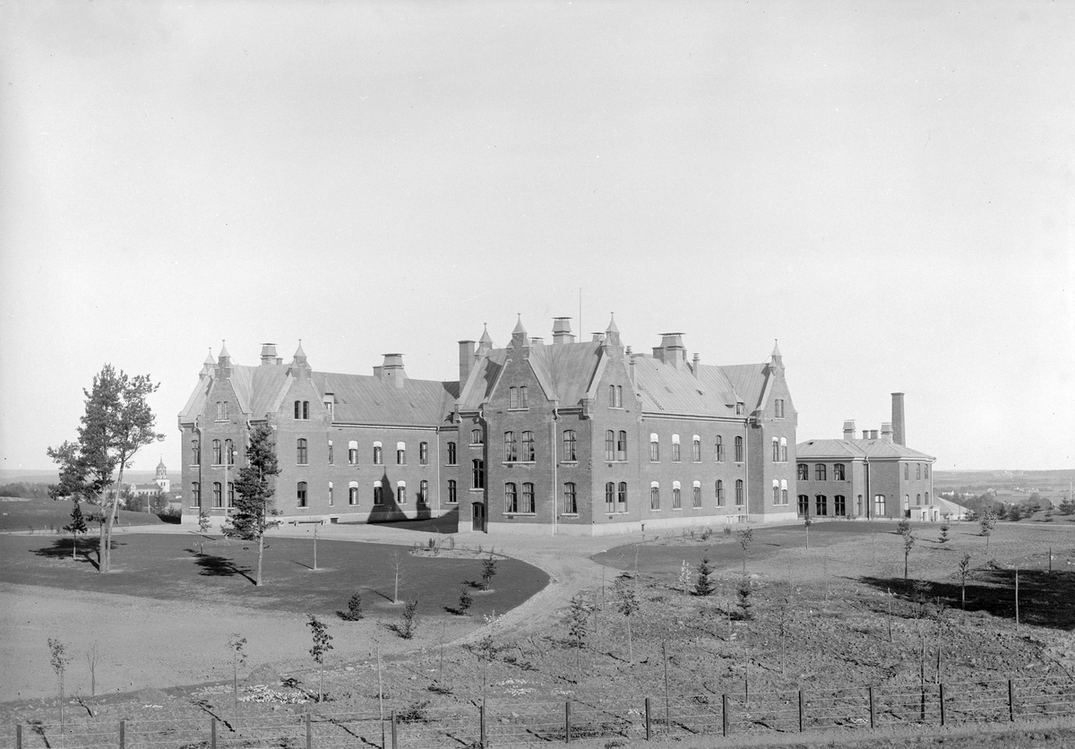Linköpings länslasarett kort efter anläggningens invigning 1895. Vy mot nordost.