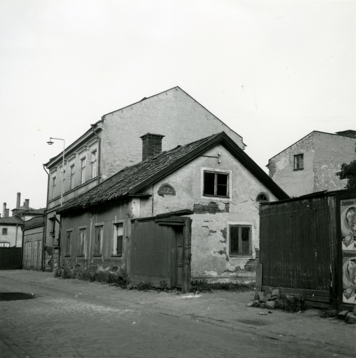 Motiv från Packhusgatan 1 i Norrköping. Fotodokumentation av bostadshus med tillhörande uthus taget i samband med ansökan om rivningstillstånd.