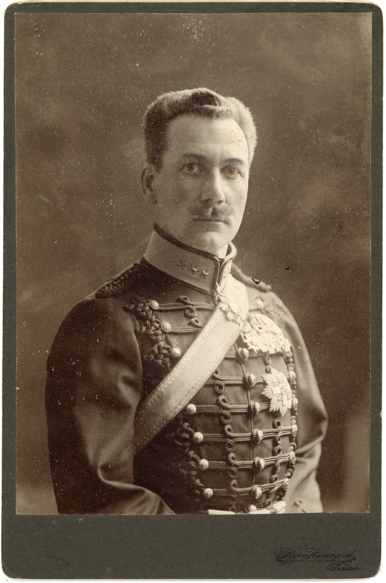 Porträtt av kapten Emil Fick. Kaptenen vid Svea artilleriregemente. Även känd som en skicklig tävlingsryttare och florettfäktare. Han hade bland annat medverkat i Stockholmsolympiaden 1912. Gift 1921 med textilkonstnären Emy Fick (1876-1959).