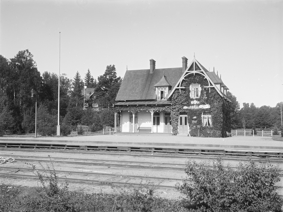 Bjärka Säby Järnvägsstation 1913. Station på sträckan Linköping-Rimforsa och den anslutande bandelen Bjärka Säby-Åtvidaberg (Östra Centralbanans Järnvägsaktiebolag, ÖCJ).