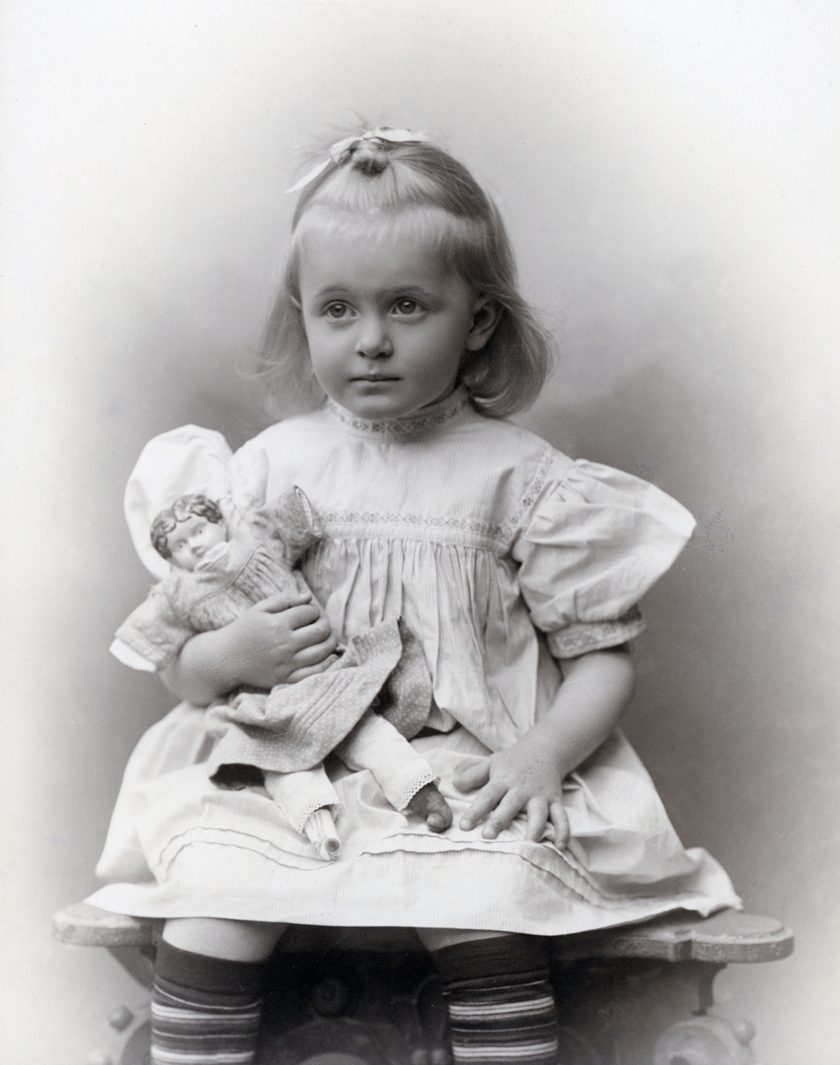 Ruth Lönegren med sin älsklingsdocka, får vi förmoda. Född i Kärna prästgård hösten 1890 som dotter och förstfödda barn till vice pastorn Ernst Lönegren och dennes hustru Ester Hellström. Ruth kom vidare att växa upp i skånska Öved, där fadern från 1894 innehade tjänsten som församlingens kyrkoherde. Han kom upplysningsvis att sedermera bli biskop över Härnösands stift. Ruths liv tog för tiden naturligtvis en annan riktning men blev ändå tämligen likartad. År 1915 kom hon nämligen att gifta sig med komministern och sedermera kyrkoherden Arne Olof Arbman. Makarna kom att verka och bilda familj i Hässjö, Västernorrlands län.