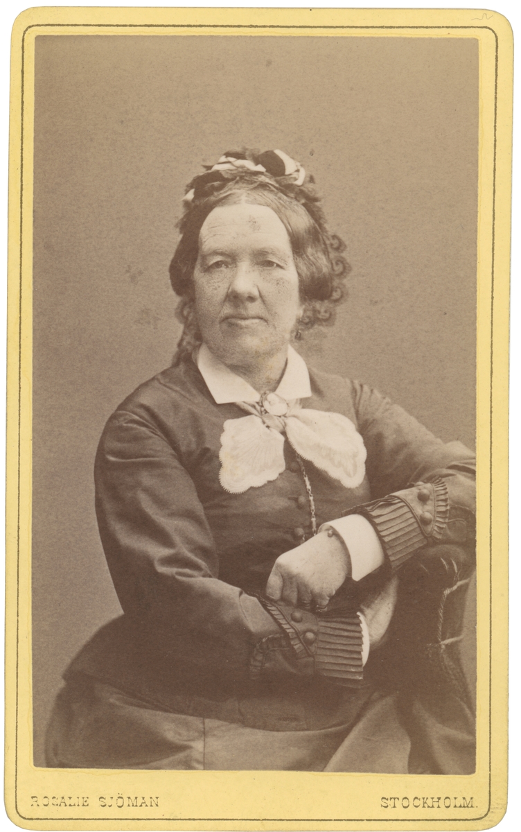 Porträtt av Wilhelmina Gravallius. Född i Mogata kom hon att växa upp i Skönberga, Västra Husby och Gårdeby, där fadern tjänstgjorde som komminister och vidare kyrkoherde. Efter fadern död 1831 flyttade änkan och barnen till Norrköping. År 1846 gifte sig Wilhelmina med kyrkoherden i Toresund, Lars Christian Gravallius. Efter att själv blivit änka 1861 flyttade hon till Stockholm och kvarbodde där till sin död 1884.