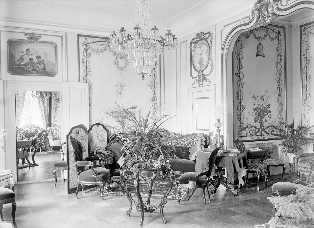 Lambohovs säteri uppfördes på platsen för en äldre karolinergård under åren 1762-1766. Beställare var översten och tidvis regementschefen vid Östgöta infanteriregemente, Fredrik Carl Sinclair. För ritningarna stod Jaen Eric Rehn, som vid sidan av sitt engagemang i Stockholms slott och andra herresäten i landet, lyckades skapa en synnerligt välproportionerad anläggning i Lambohov. Vid tiden för bilden ägdes godset av greve James Henry Sinclair och dennes maka Amalia von Holst. Bilden visar säteriets paradsängkammare.