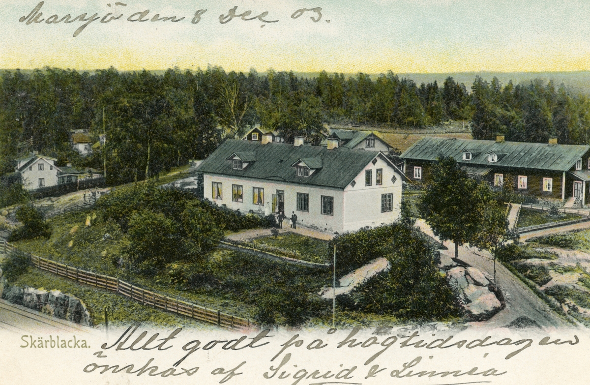 Brevkort med motiv från Skärblacka. Här genom en gratulationshälsning skickad 1903.