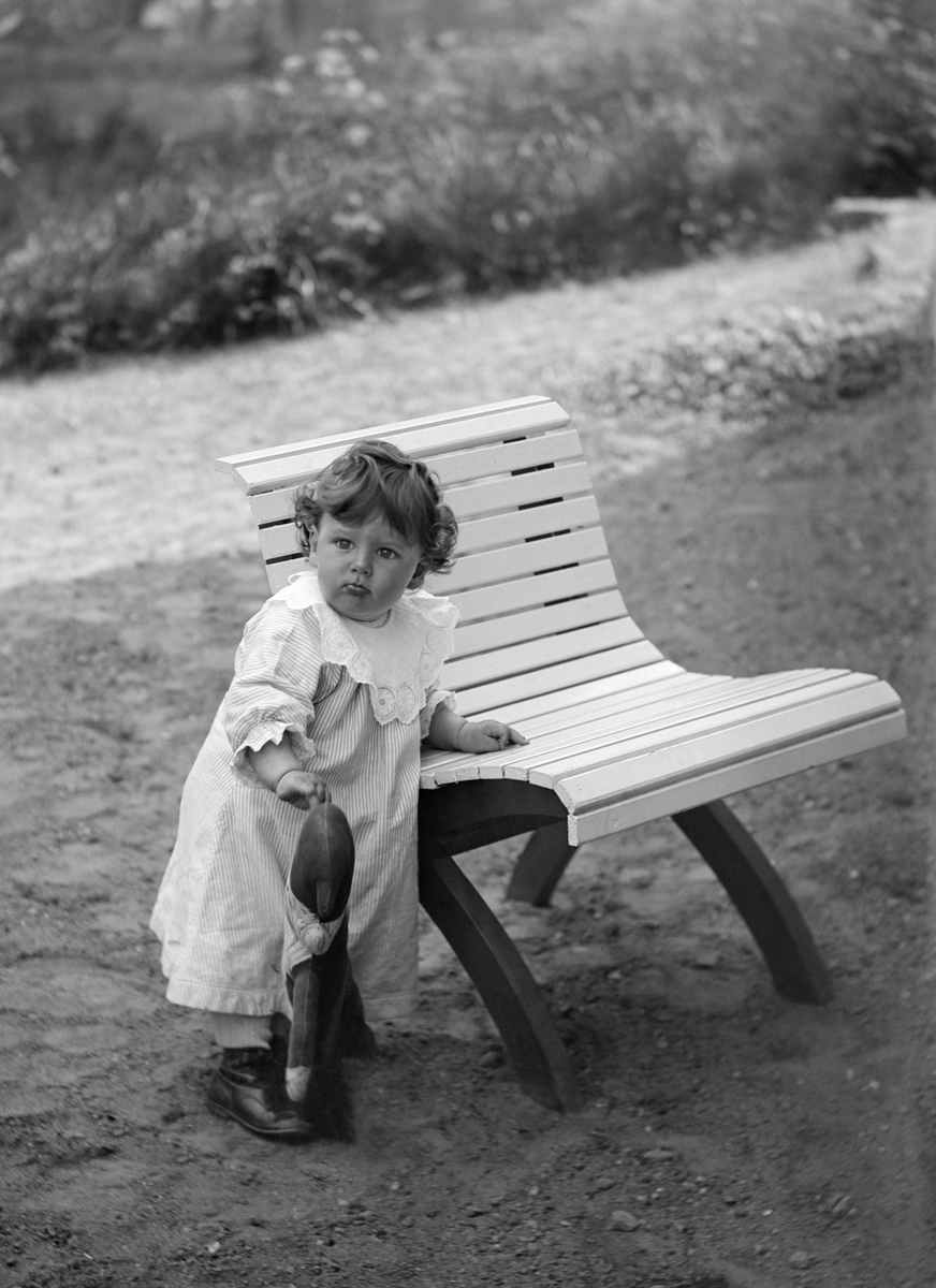 Lille gossen Christer Gabrielsson Spens spatserar i trädgården till godset Engelholm i Sankt Anna. Han är son till godsägaren och greve Gabriel Spens och dennes maka Ellen Signhild, född Enhörning.