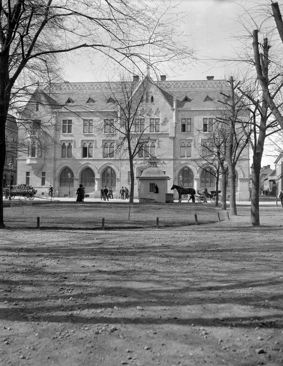 Riksbankens kontor i Linköping 1911. Bankhuset ritades av den från Stockholm verksamme Fredrik Olaus Lindström och hans skapelse förändrade stort karaktären av gatuavsnittet utmed S:t Larsgatan. Tomten hade tidigare utgjort platsen för stadens teater, Assemblé- och spektakelhuset, ett träslott med ålderdomligt uttryck.
