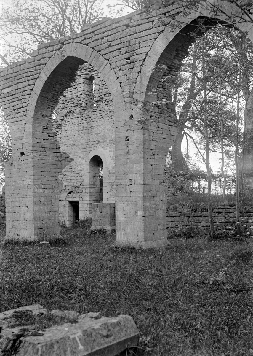 Miljön vid cisterciensernas forna kloster i Alvastra. Återgivning från amatörfotografen Fritz Lovéns besök 1893 eller möjligtvis 1894.