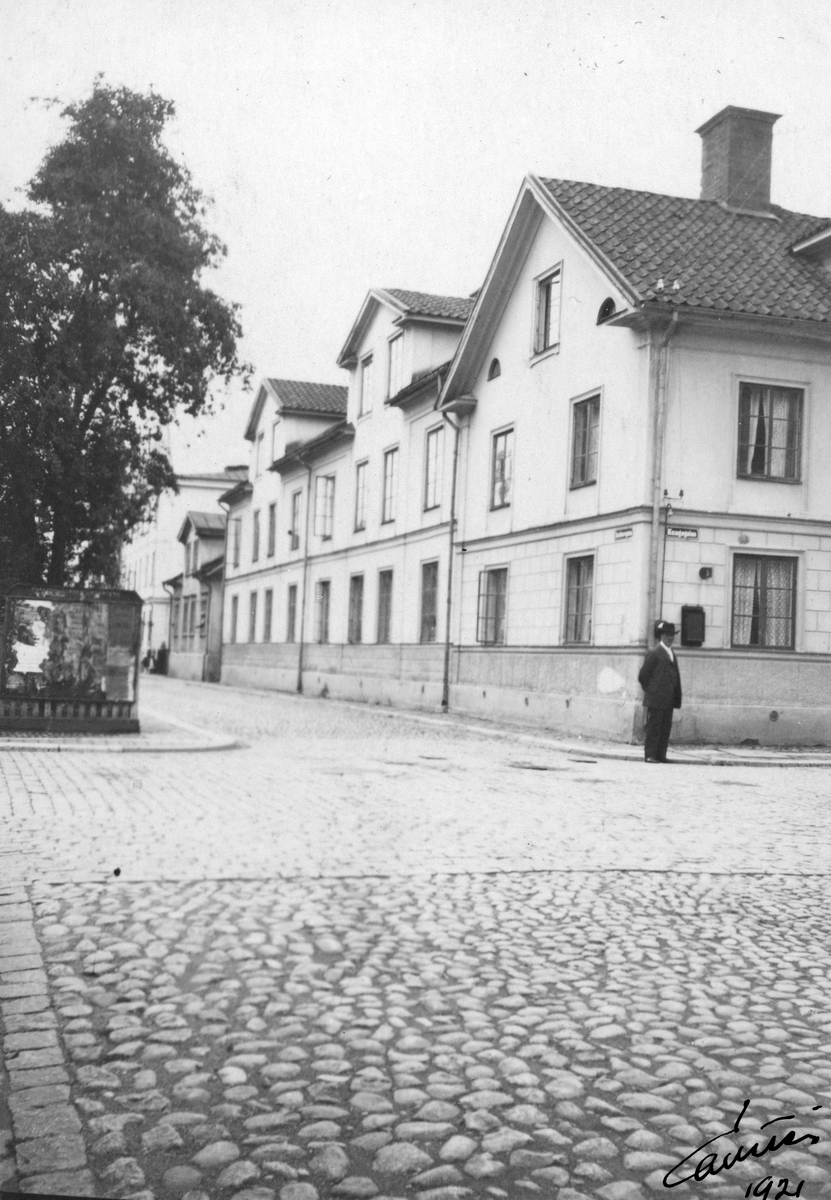 Ur ett brevkortsalbum väljer vi att publicera denna något oskarpa men sällan förevigade vy från Linköping. Bilden visar Snickaregatan söderut från gatans korsning med Kungsgatan. Fotografens signatur har inte kunnat uttydas men väl dateringen 1921.