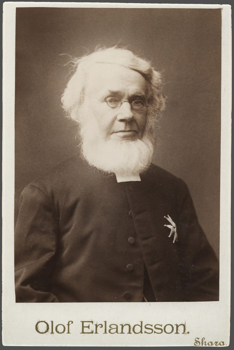 Karaktärsfullt porträtt av domprost Anders Fredrik Sondén. Född i Landeryd 1807 som son till dåvarande pastorn, sedermera kyrkoherden, Johan Adolf Sondén och makan Anna Chatarina Kernell. Modern var bördig från Åsbo socken och på mödernet var han kusin med den i samma socken uppvuxne Per Daniel Amadeus Atterbom. Efter studier vid Uppsala universitet till doktors grad tillträdde Sondén en lektorstjänst i Linköping. Tiotalet år därefter påbörjade han sin långa tjänstgöring som kyrkoherde, först i Skeda och därefter i Kvillinge och Simonstorp. Från 1864 domprost i Skara. Privat var han från 1839 gift med Carolina Cecilia Kalén.