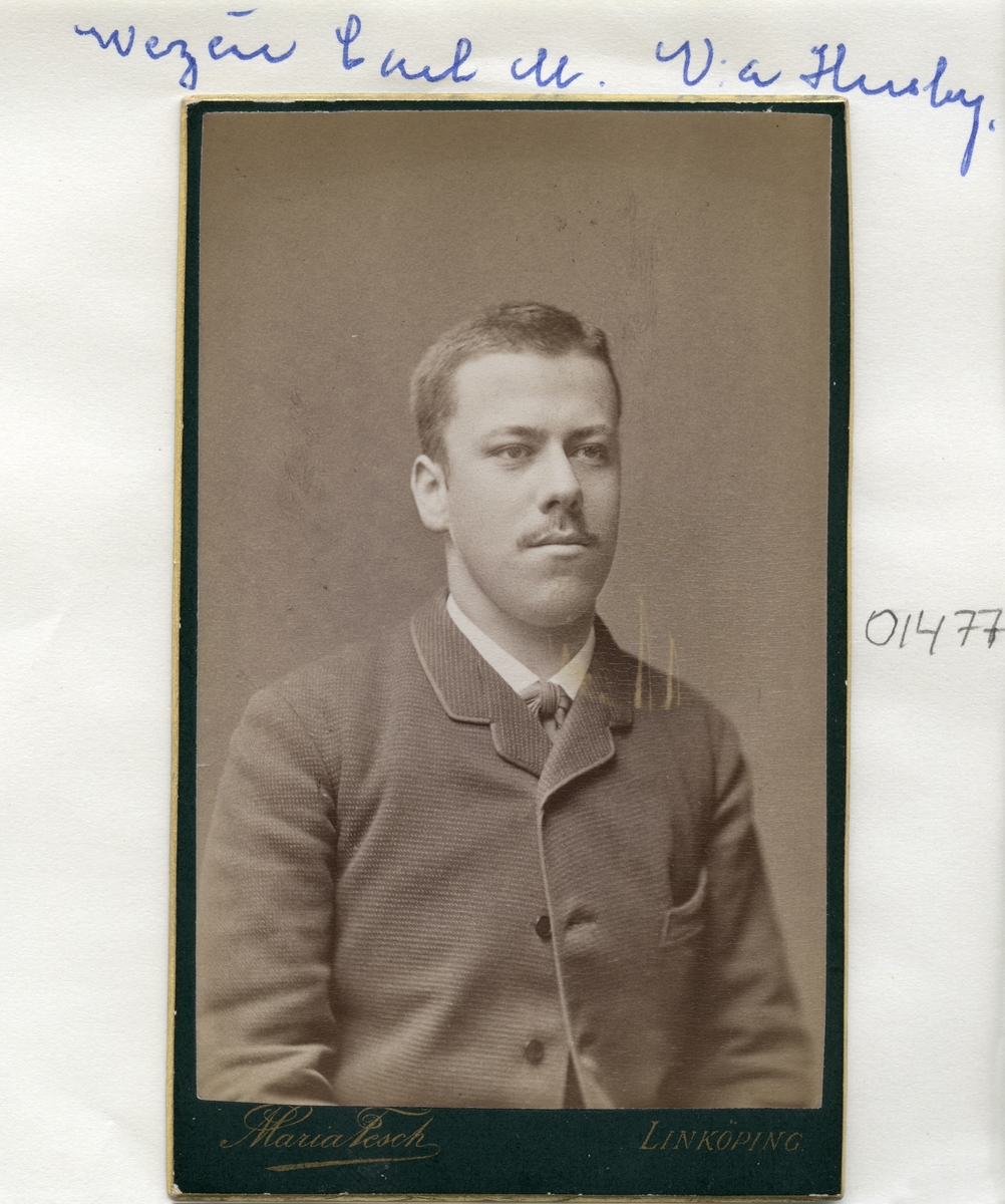 Ungdomsporträtt av Carl Wezén. Född i trillingskara 1865 som son till dåvarande komminister Carl Magnus Wezén och makan Maria Charlotta Theodora Cnattingius. Från år 1878 var familjen bosatt i Västra Husby, där fader blivit kyrkoherde. I vuxen ålder kom Carl att tjänstgöra som hovrättsnotarie i Norrköping, Nässjö och vidare i Malmö. Där fann han sin blivande maka i norskan Caspara Margreta Axberg. I november månad 1910 gifte de sig borgligt men äktenskapet blev kortvarigt. Redan 1913 blev Carl änkling. Därefter fortsatte han sitt liv i en ambulerande tillvaro. Gamleby, Bollnäs, Lycksele, Vimmerby, Linköping och Stockholm är exempel på hans vistelseorter där han emellan upprepade gånger var bosatt hos fadern i Västra Husby prästgård. Han avled barnlös 1936. Han var då skriven i uppländska Skebobruk.