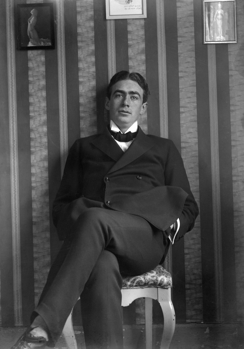 Porträtt av Åke Hoff omkring 1910. Son till sadelmakare Carl Johan Hoff och dennes maka Amalia Albertina Karlsdotter. Det finns skäl att anta att bilden är tagen i hans barndomshem vid Storgatan i Örebro.