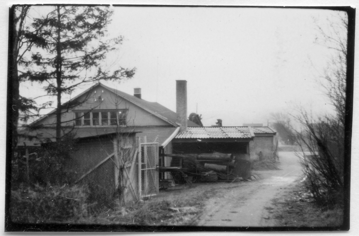Vägstation O2, Stora Höga. Förrådsbyggnader. Upplag av diverse material.