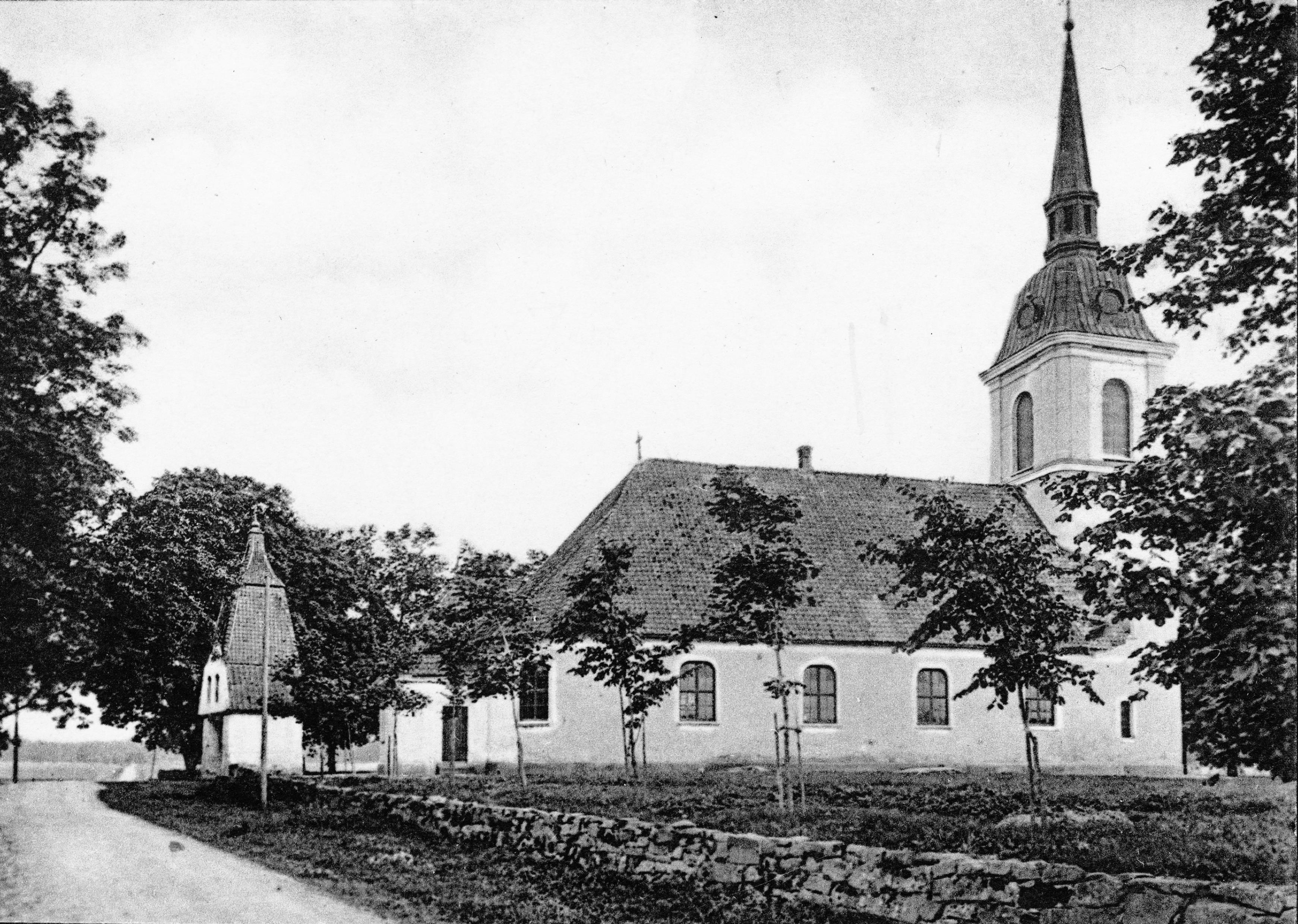 Kyrkan och stigluckan (med klockstapel) från norr.