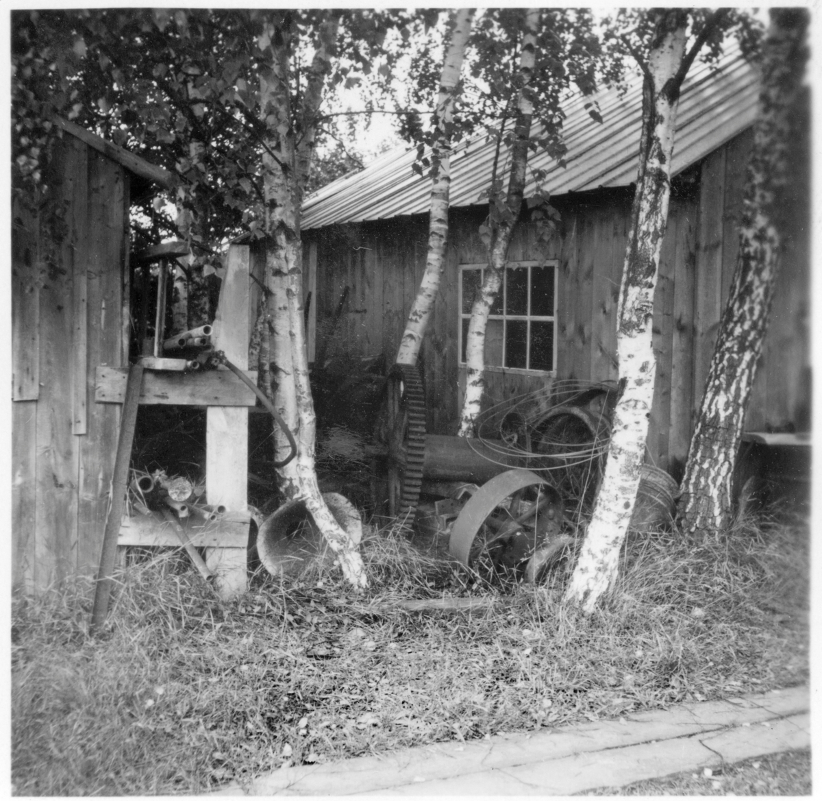Titel: I län, Hamnförrådet, Visby. Förrådsbyggnader, upplag av diverse material, "skrot".
