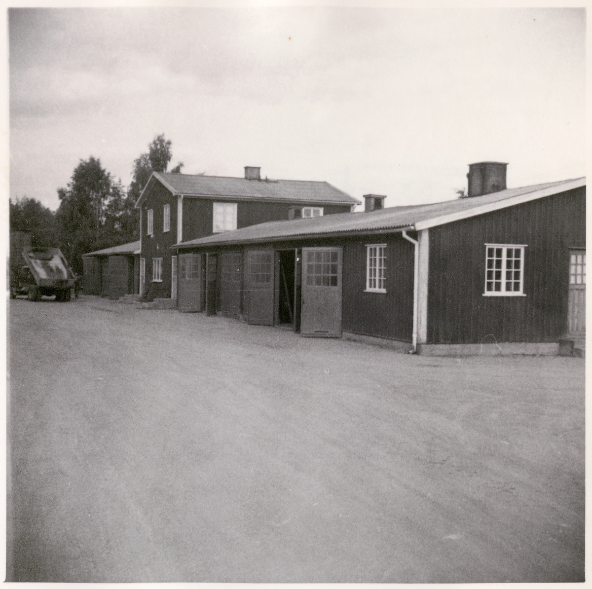 Vägstation G4, Bergsnäs, filial Räppe. Byggnad bestående av två garagelängor med en tvåvåningsbyggnad i mitten, troligen kontor och förråd. Lastbil med flaket uppfällt.