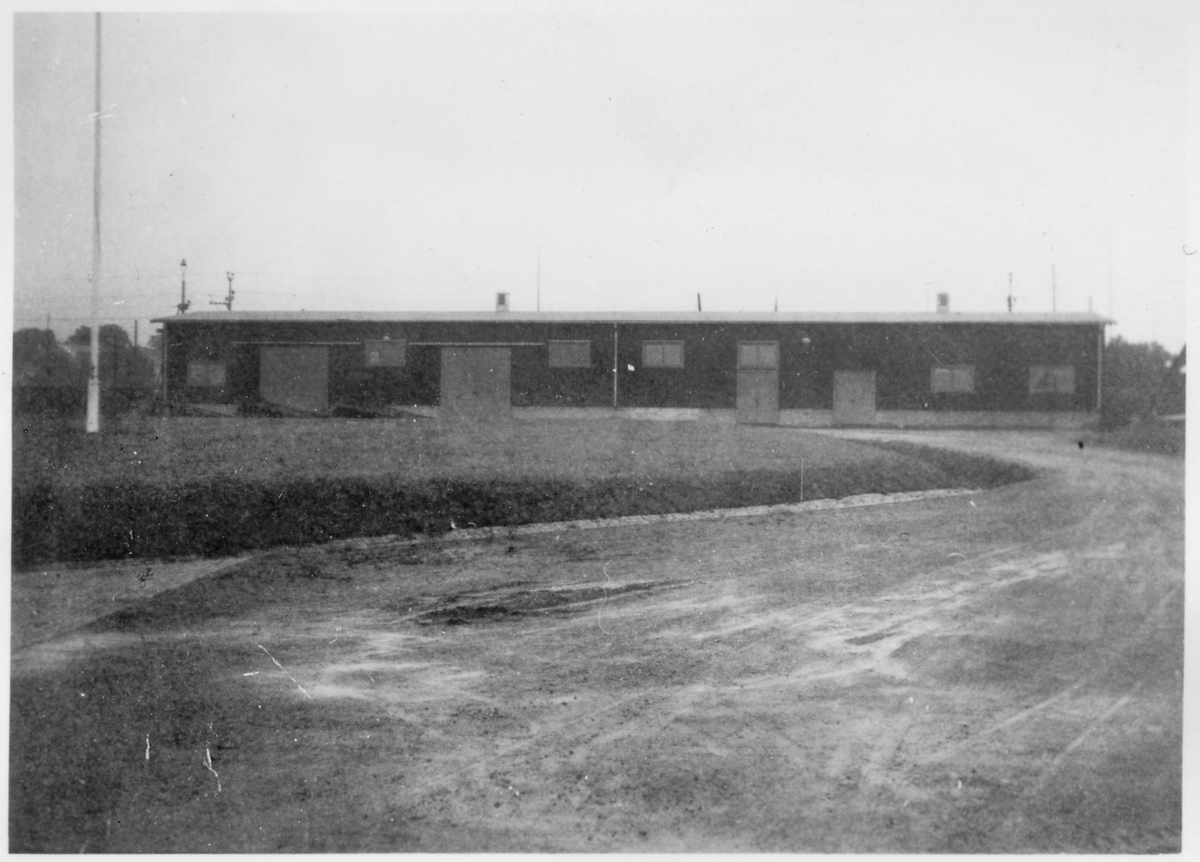Titel: VFO, Depåförrådet. Förrådsbyggnad. Bakom förrådet elektrifierad järnväg.