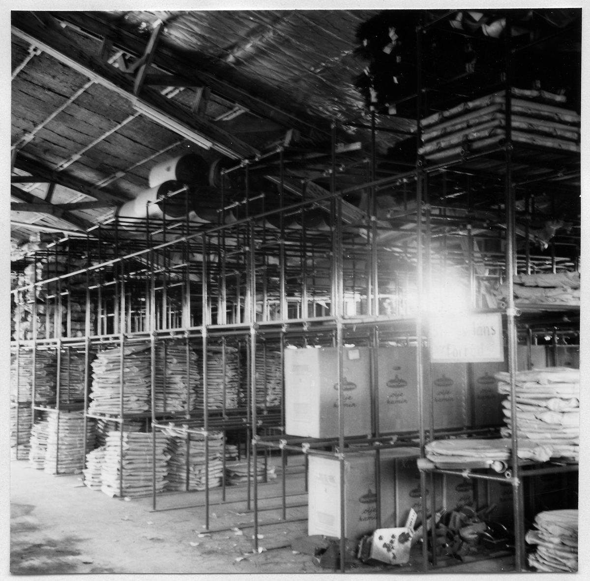 Vägstation B4, Knivsta. Interiör från förrådsskjul av plåt. Eventuellt från Vägverket, VV Centralförrådet.