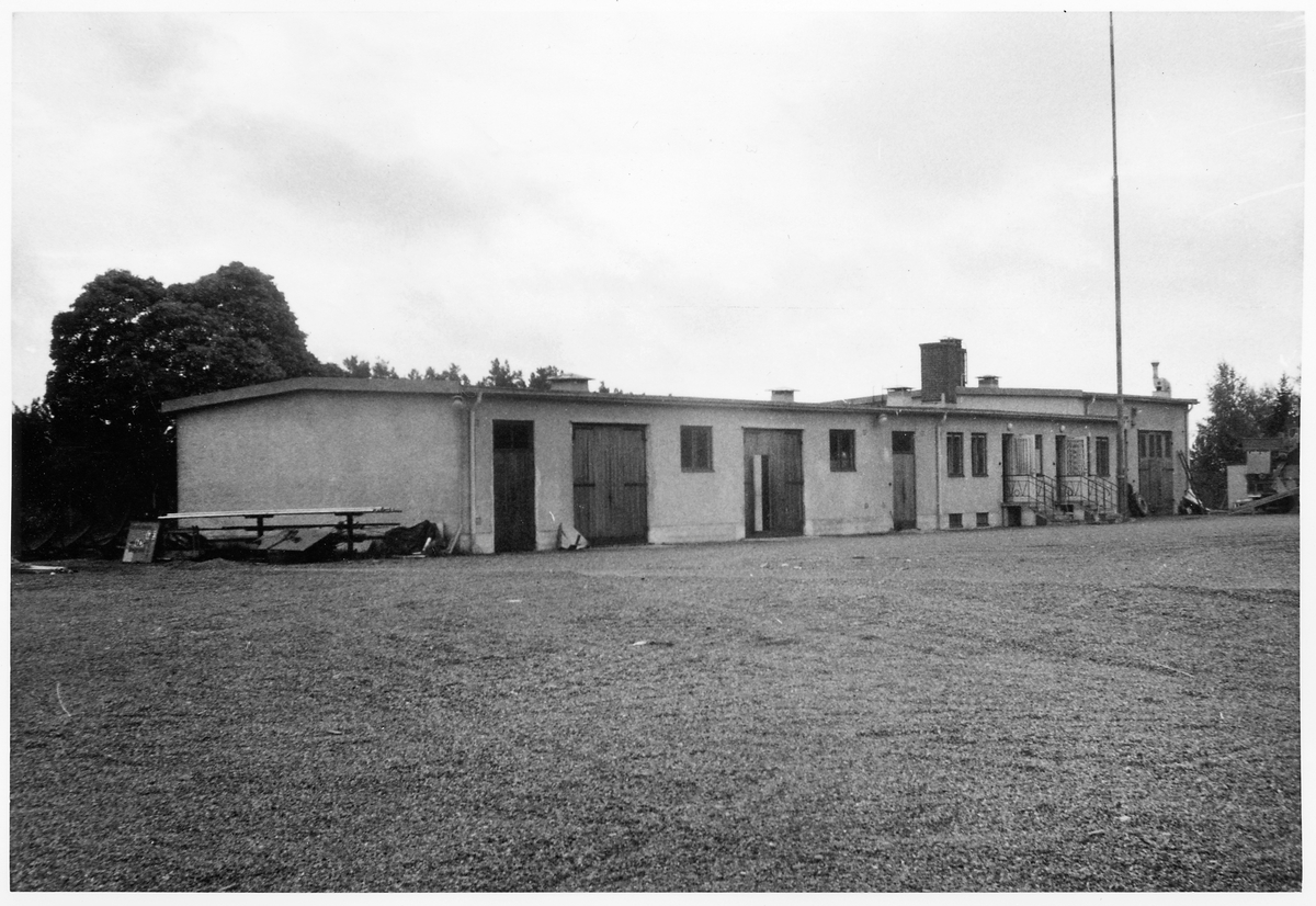 Vägstation B3 Söderby-Karl. Vägstationens huvudbyggnad. Från vänster förråd, kontorsdel, verkstadsdel.