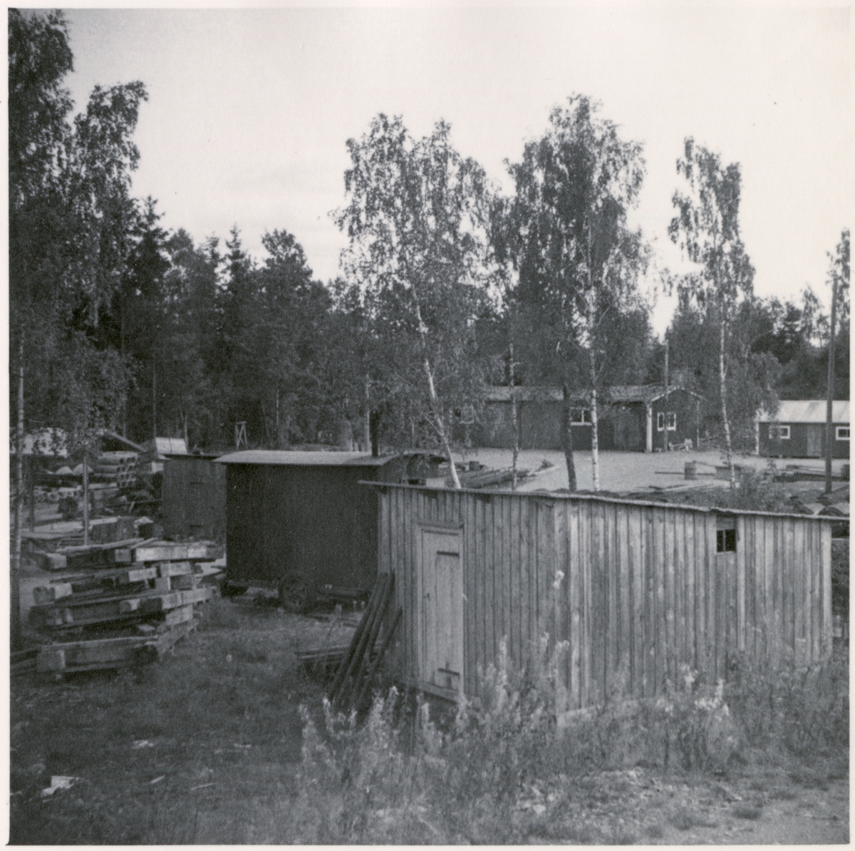 Vägstation G4, Bergsnäs, filial Räppe. Olika förrådsbyggnader, diverse materielupplag, manskapsvagn.