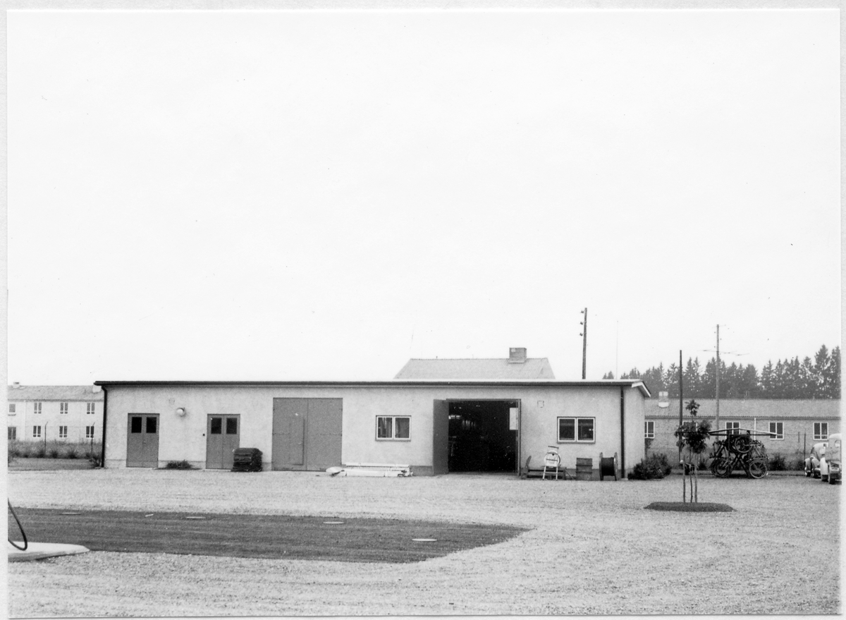 Vägstation H7, Högsby. Förrådsbyggnad, cykelställ med cyklar.